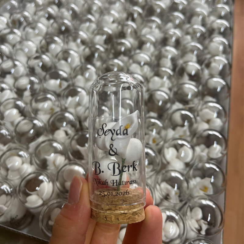 Cam Şişede Badem Şekeri ve Çiçek Nikah Hediyesi