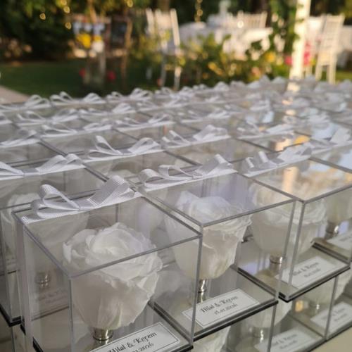 Pleksili Çiçekli Kraft Karton Kutu Nişan ve Nikah Hediyesi