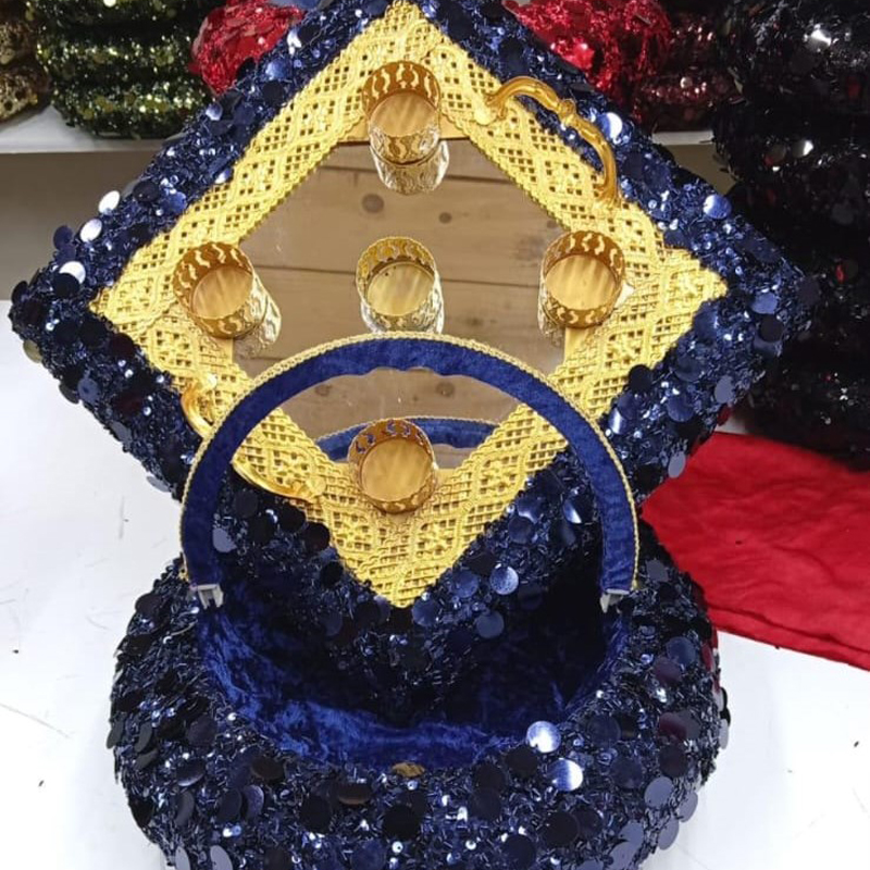 Kare aynalı, pullu kına tepsisi ve sepet takımı