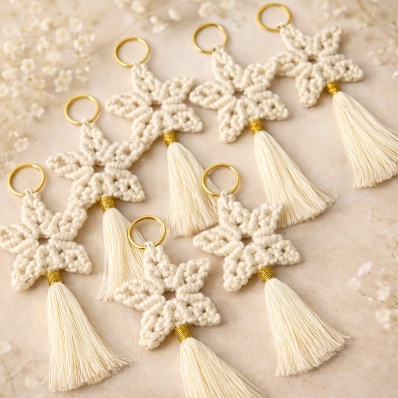 Makrome İp El Yapımı Yıldız Anahtarlık Nikah Hediyesi